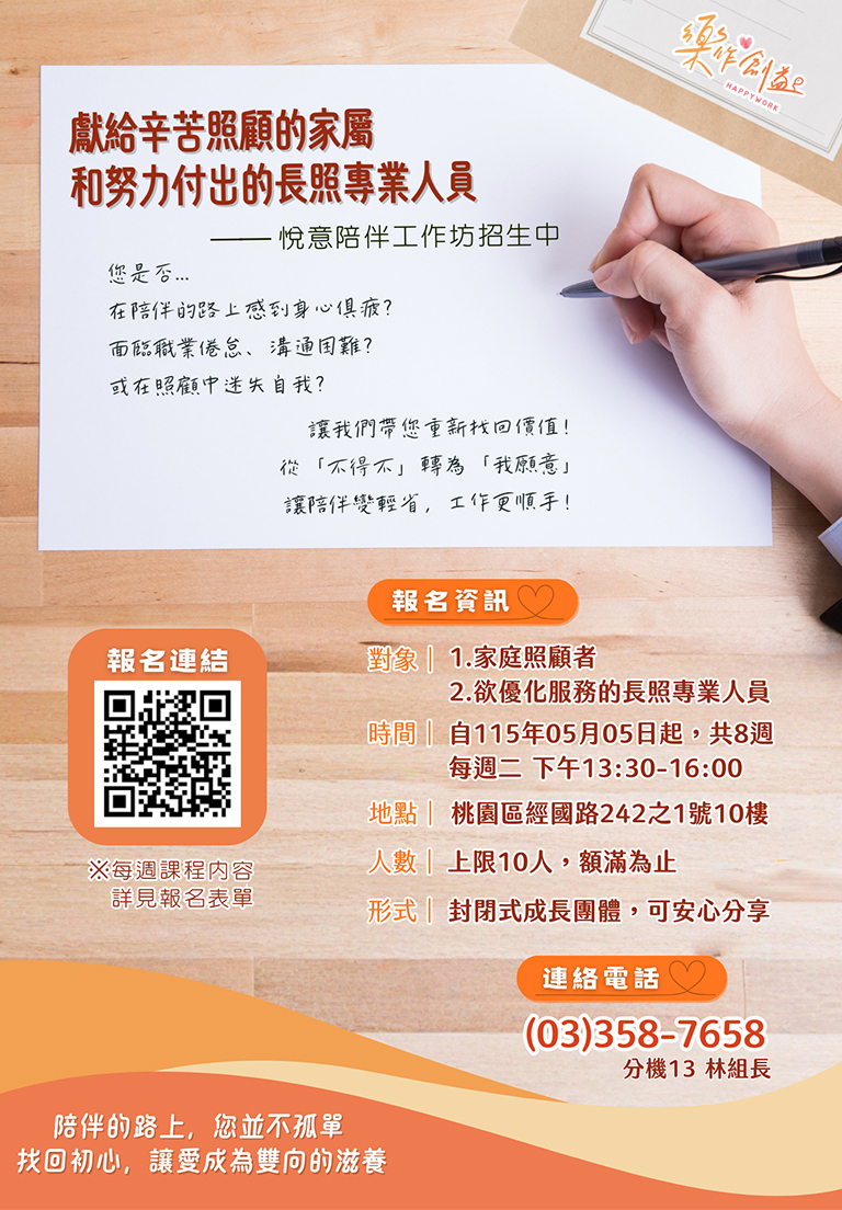 悅意陪伴工作坊帶您從心出發