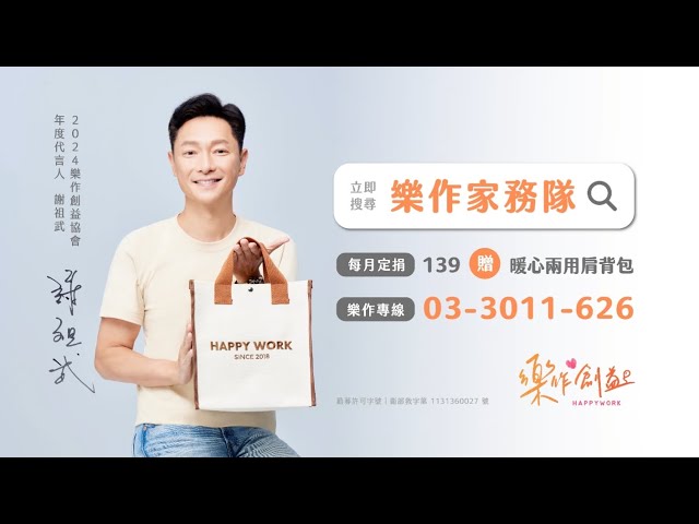為幫助台灣樂作創益協會所服務的身障樂兒與獨居長輩,感謝不老男神—謝祖武挺身擔任樂作2024公益代言人。
