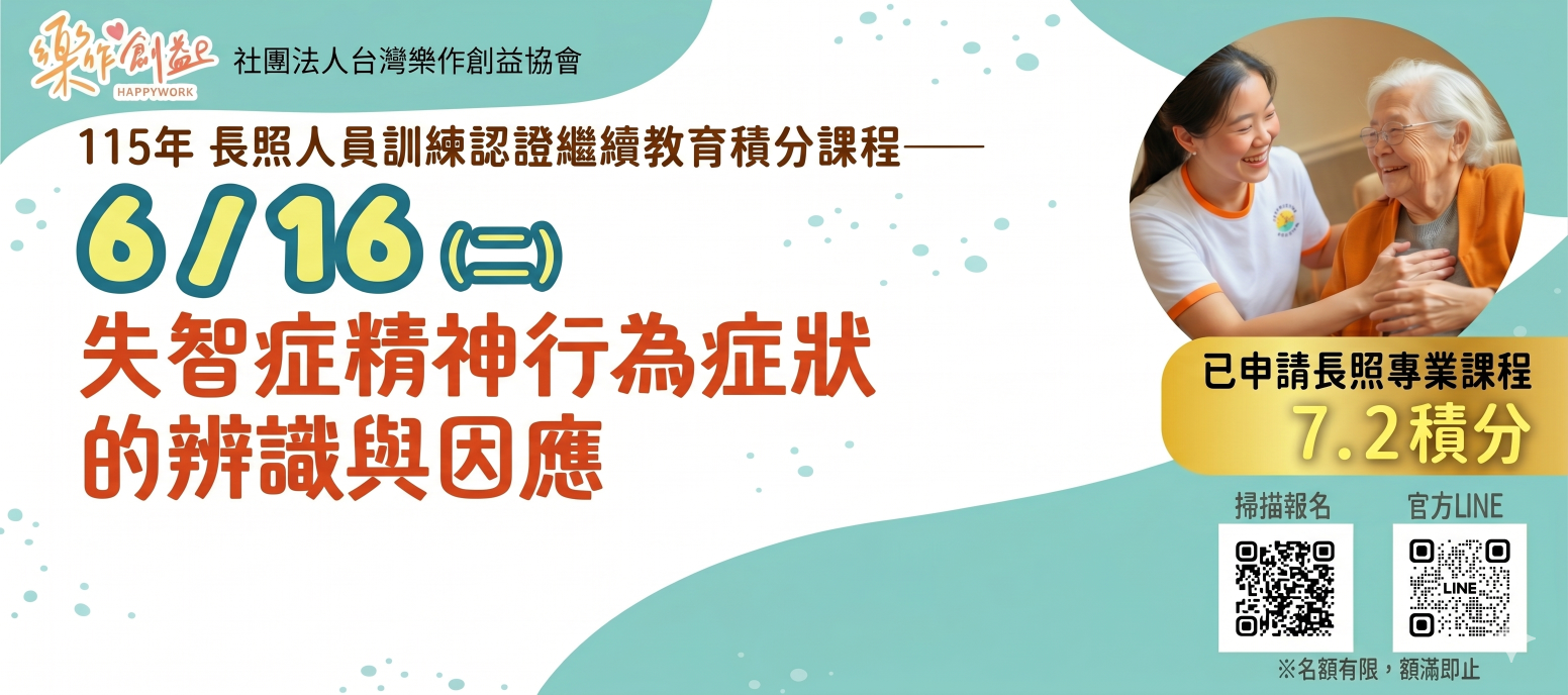 適合對象: 長照人員、照服員、對課程有興趣者、家庭照顧者