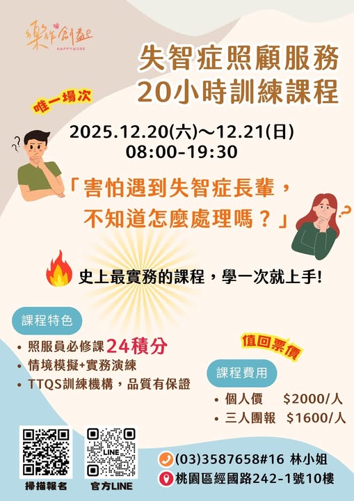 透過【失智症照顧服務20小時訓練課程】
