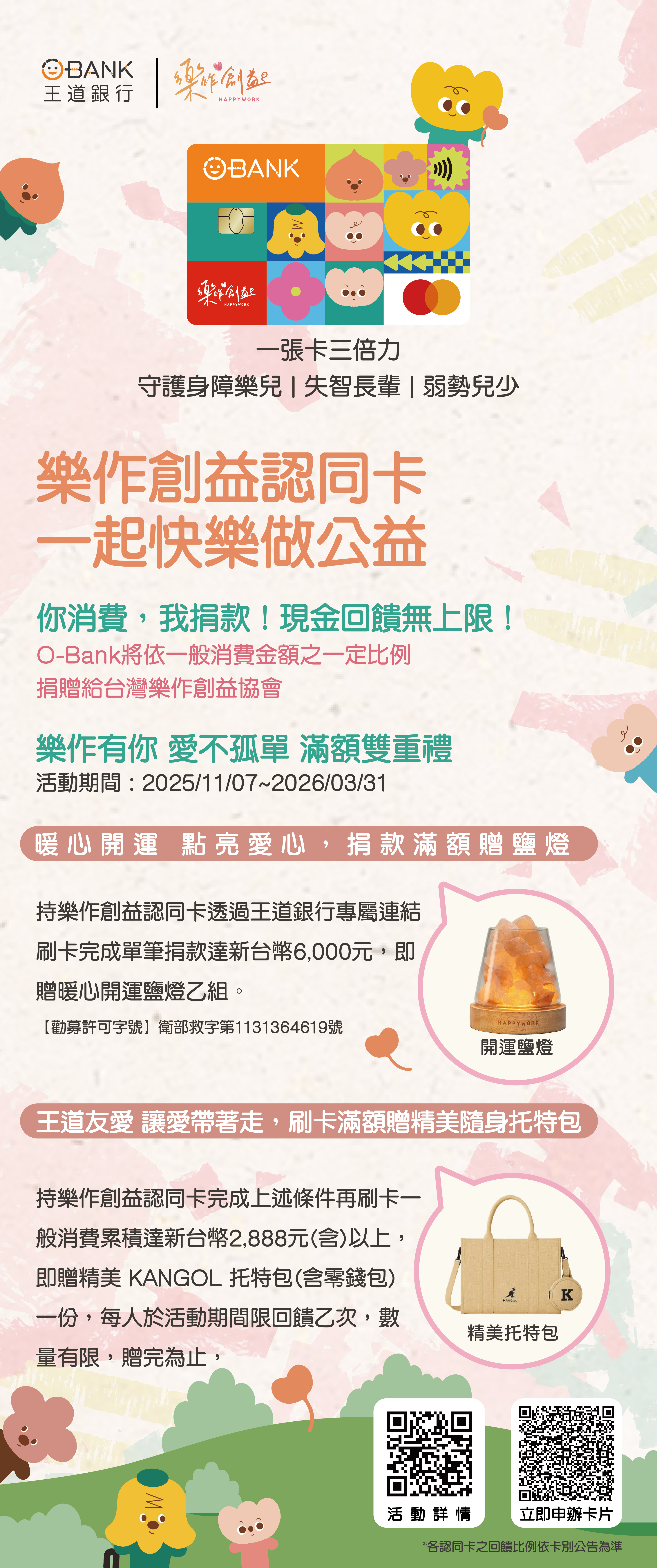 【樂作有你 愛不孤單】樂作創益認同卡捐款消費,滿額雙重禮 !